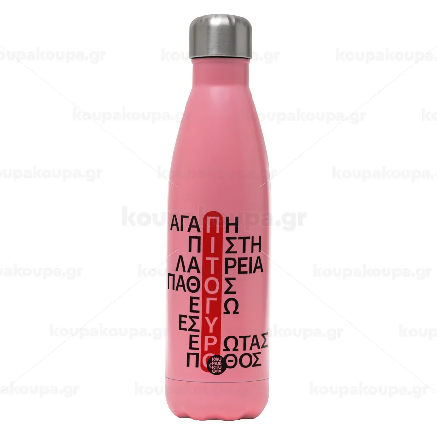 Πιτόγυρο πόθος, Μεταλλικό παγούρι θερμός Ροζ Ματ (Stainless steel), διπλού τοιχώματος, 500ml