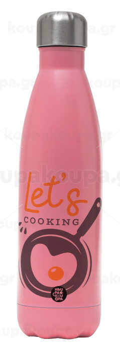 Let's cooking, Μεταλλικό παγούρι θερμός Ροζ Ματ (Stainless steel), διπλού τοιχώματος, 500ml