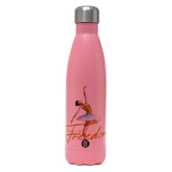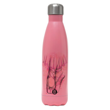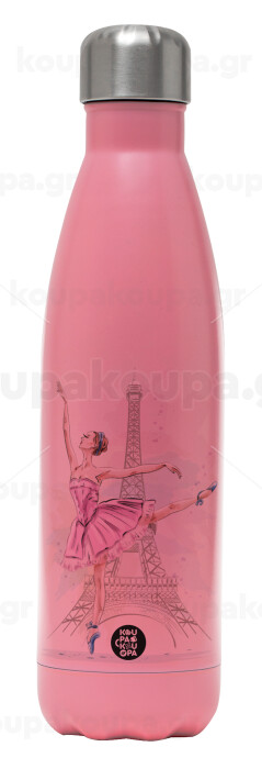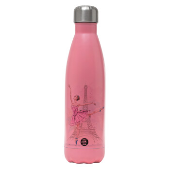 Ballerina in Paris, Μεταλλικό παγούρι θερμός Ροζ Ματ (Stainless steel), διπλού τοιχώματος, 500ml