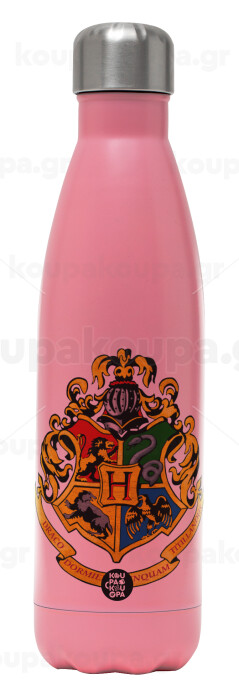 Hogwart's, Μεταλλικό παγούρι θερμός Ροζ Ματ (Stainless steel), διπλού τοιχώματος, 500ml