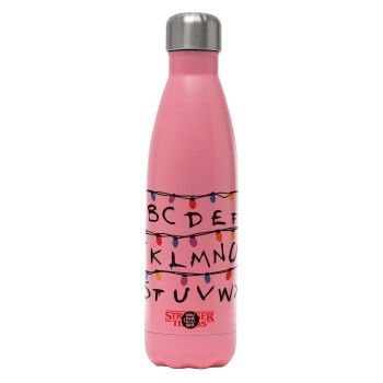 Stranger Things ABC, Μεταλλικό παγούρι θερμός Ροζ Ματ (Stainless steel), διπλού τοιχώματος, 500ml