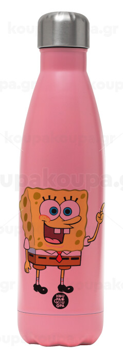 Μπομπ Σφουγγαράκης character, Μεταλλικό παγούρι θερμός Ροζ Ματ (Stainless steel), διπλού τοιχώματος, 500ml