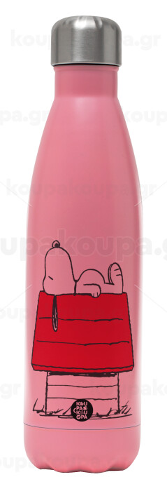Το σπίτι του snoopy, Μεταλλικό παγούρι θερμός Ροζ Ματ (Stainless steel), διπλού τοιχώματος, 500ml