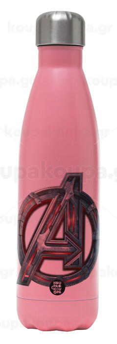 Avengers, Μεταλλικό παγούρι θερμός Ροζ Ματ (Stainless steel), διπλού τοιχώματος, 500ml