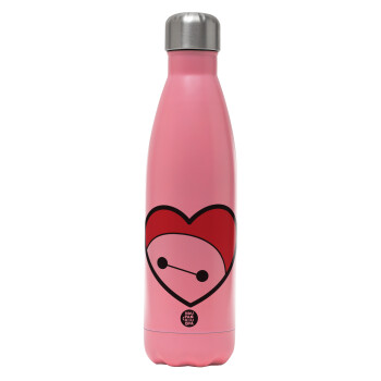 Baymax heart, Μεταλλικό παγούρι θερμός Ροζ Ματ (Stainless steel), διπλού τοιχώματος, 500ml