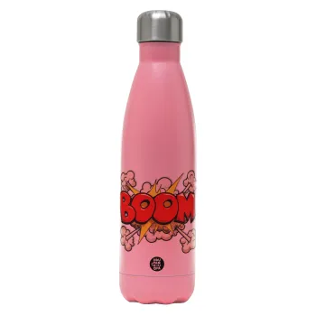 BOOM!!!, Μεταλλικό παγούρι θερμός Ροζ Ματ (Stainless steel), διπλού τοιχώματος, 500ml