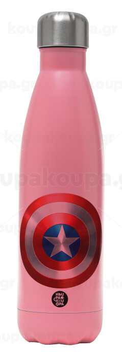 Captain America, Μεταλλικό παγούρι θερμός Ροζ Ματ (Stainless steel), διπλού τοιχώματος, 500ml
