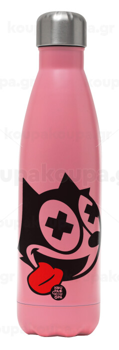 helix the cat, Μεταλλικό παγούρι θερμός Ροζ Ματ (Stainless steel), διπλού τοιχώματος, 500ml