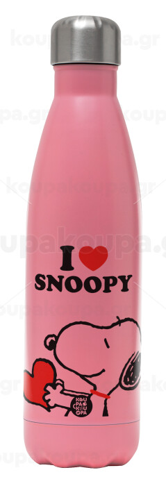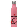 I LOVE SNOOPY, Μεταλλικό παγούρι θερμός Ροζ Ματ (Stainless steel), διπλού τοιχώματος, 500ml