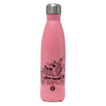 Mickey steamboat, Μεταλλικό παγούρι θερμός Ροζ Ματ (Stainless steel), διπλού τοιχώματος, 500ml