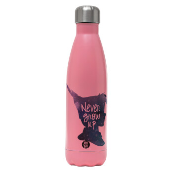 Never Grow UP, Μεταλλικό παγούρι θερμός Ροζ Ματ (Stainless steel), διπλού τοιχώματος, 500ml