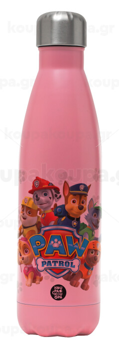PAW patrol, τα κουτάβια, Μεταλλικό παγούρι θερμός Ροζ Ματ (Stainless steel), διπλού τοιχώματος, 500ml