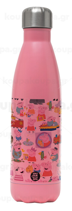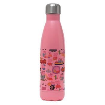 Peppa pig Characters, Μεταλλικό παγούρι θερμός Ροζ Ματ (Stainless steel), διπλού τοιχώματος, 500ml