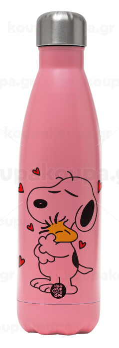 Snoopy Love, Μεταλλικό παγούρι θερμός Ροζ Ματ (Stainless steel), διπλού τοιχώματος, 500ml