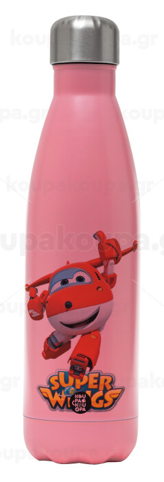 Super Wings, Μεταλλικό παγούρι θερμός Ροζ Ματ (Stainless steel), διπλού τοιχώματος, 500ml