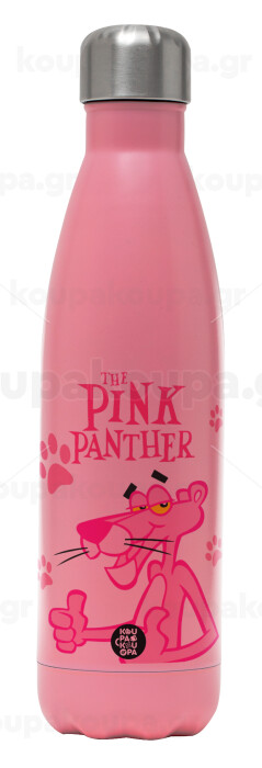 The pink panther, Μεταλλικό παγούρι θερμός Ροζ Ματ (Stainless steel), διπλού τοιχώματος, 500ml