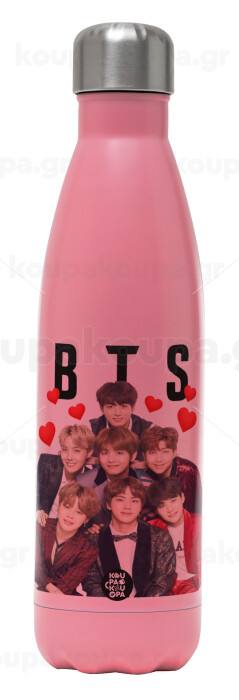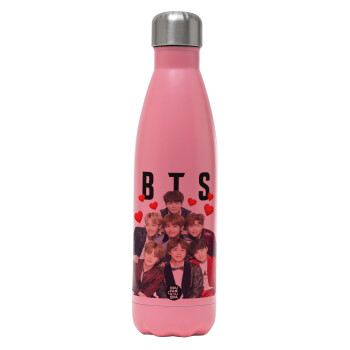 BTS hearts, Μεταλλικό παγούρι θερμός Ροζ Ματ (Stainless steel), διπλού τοιχώματος, 500ml