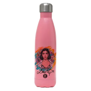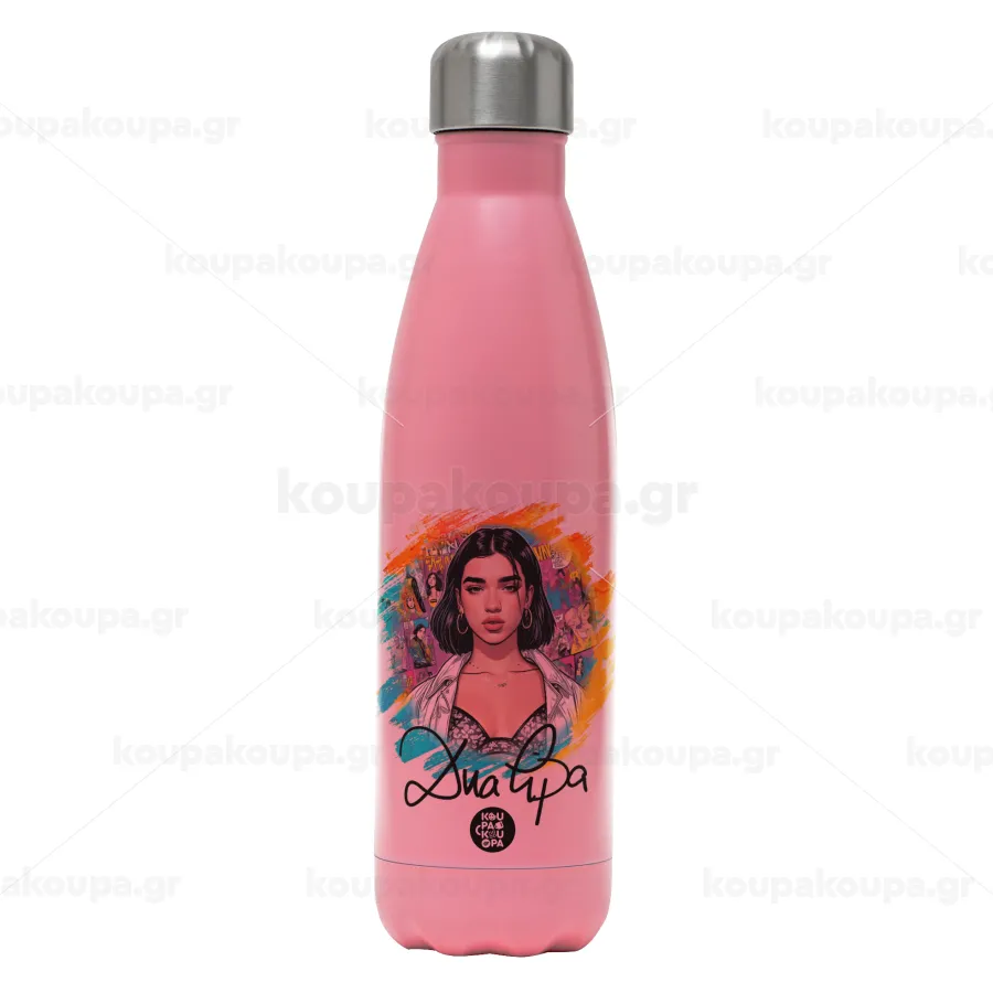 Dua lipa, Μεταλλικό παγούρι θερμός Ροζ Ματ (Stainless steel), διπλού τοιχώματος, 500ml