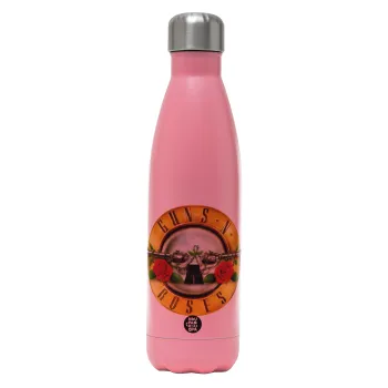 Guns N' Roses, Μεταλλικό παγούρι θερμός Ροζ Ματ (Stainless steel), διπλού τοιχώματος, 500ml
