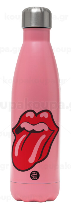 Rolling Stones Kiss, Μεταλλικό παγούρι θερμός Ροζ Ματ (Stainless steel), διπλού τοιχώματος, 500ml