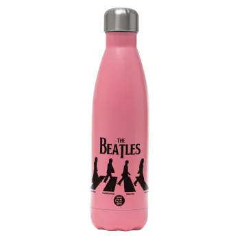 The Beatles, Abbey Road, Μεταλλικό παγούρι θερμός Ροζ Ματ (Stainless steel), διπλού τοιχώματος, 500ml