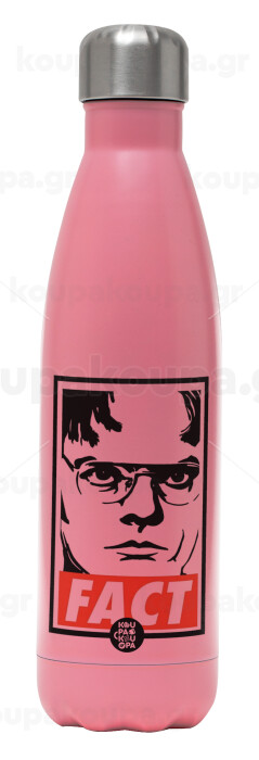 Dunder Mifflin FACT, Μεταλλικό παγούρι θερμός Ροζ Ματ (Stainless steel), διπλού τοιχώματος, 500ml