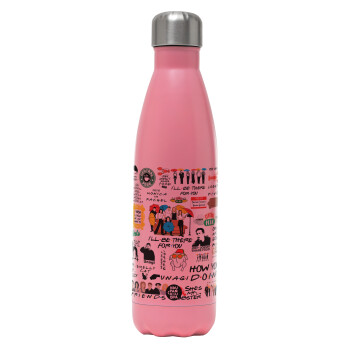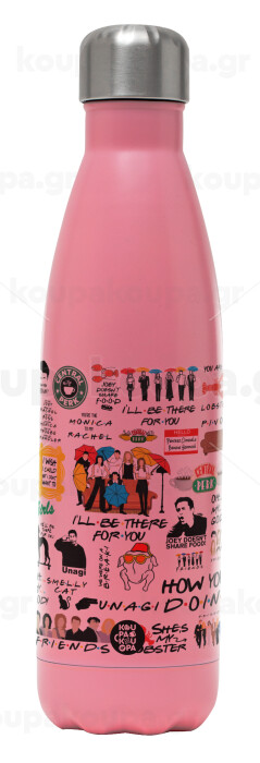 Friends, Μεταλλικό παγούρι θερμός Ροζ Ματ (Stainless steel), διπλού τοιχώματος, 500ml
