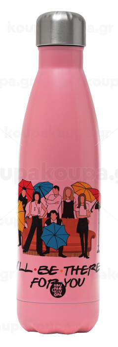 Friends cover, Μεταλλικό παγούρι θερμός Ροζ Ματ (Stainless steel), διπλού τοιχώματος, 500ml