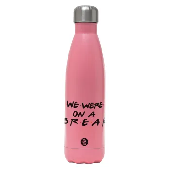 Friends we were on a break, Μεταλλικό παγούρι θερμός Ροζ Ματ (Stainless steel), διπλού τοιχώματος, 500ml