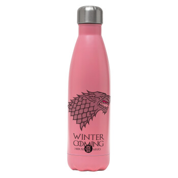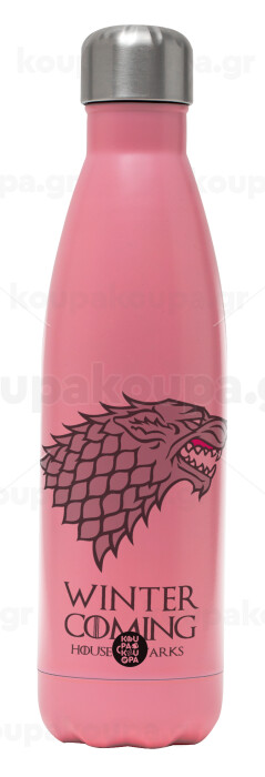 GOT House of Starks, winter coming, Μεταλλικό παγούρι θερμός Ροζ Ματ (Stainless steel), διπλού τοιχώματος, 500ml