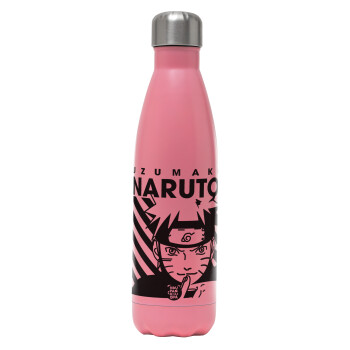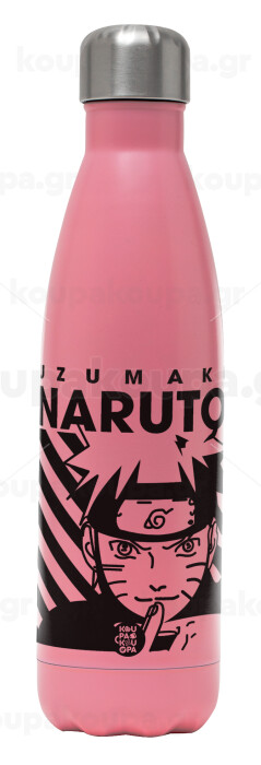 Naruto uzumaki, Μεταλλικό παγούρι θερμός Ροζ Ματ (Stainless steel), διπλού τοιχώματος, 500ml