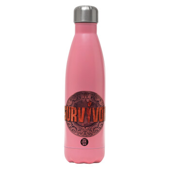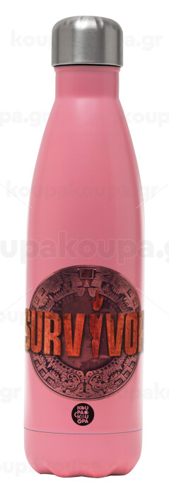 Survivor, Μεταλλικό παγούρι θερμός Ροζ Ματ (Stainless steel), διπλού τοιχώματος, 500ml
