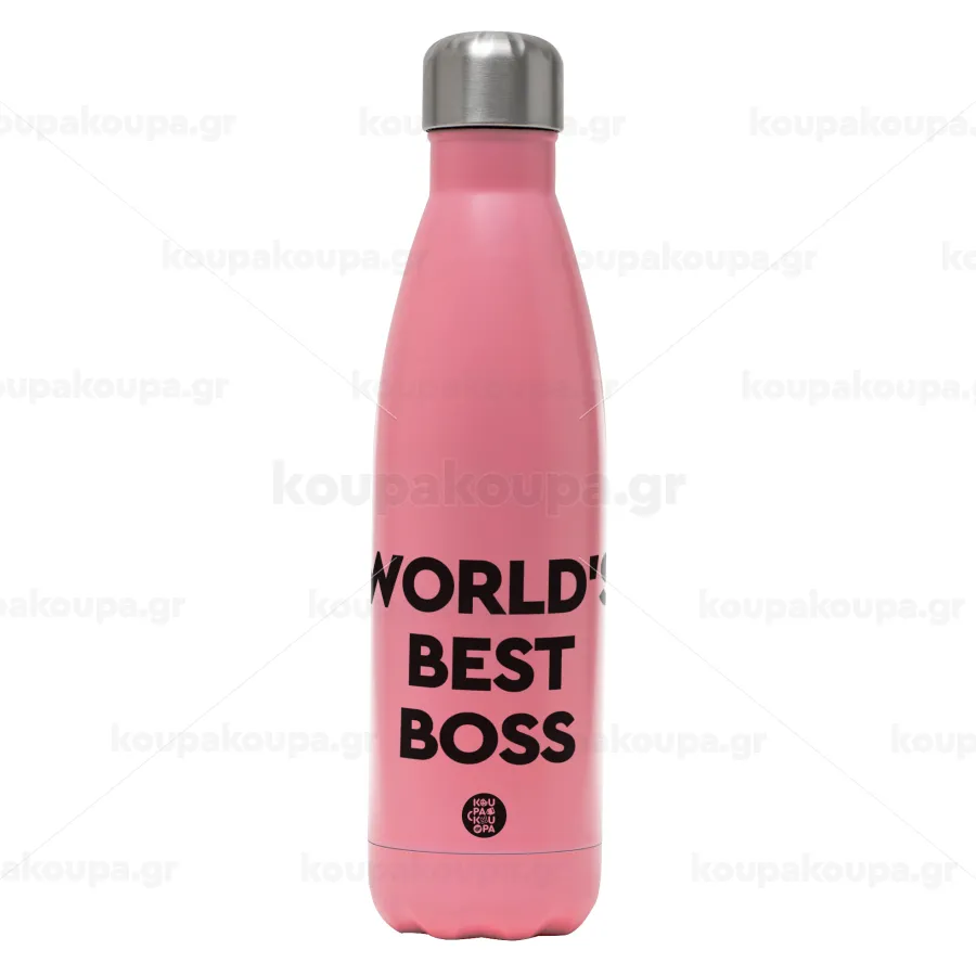 World's best boss, Μεταλλικό παγούρι θερμός Ροζ Ματ (Stainless steel), διπλού τοιχώματος, 500ml