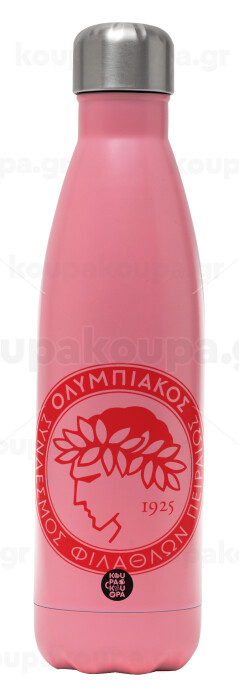 Ολυμπιακός, Μεταλλικό παγούρι θερμός Ροζ Ματ (Stainless steel), διπλού τοιχώματος, 500ml