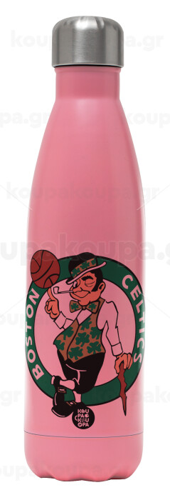 Boston Celtics, Μεταλλικό παγούρι θερμός Ροζ Ματ (Stainless steel), διπλού τοιχώματος, 500ml