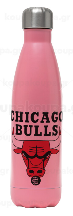 Chicago Bulls, Μεταλλικό παγούρι θερμός Ροζ Ματ (Stainless steel), διπλού τοιχώματος, 500ml
