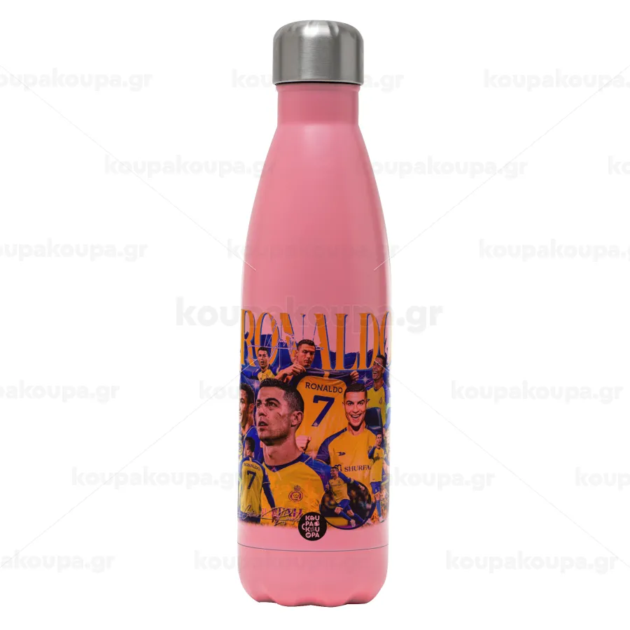 Cristiano Ronaldo Al Nassr, Μεταλλικό παγούρι θερμός Ροζ Ματ (Stainless steel), διπλού τοιχώματος, 500ml