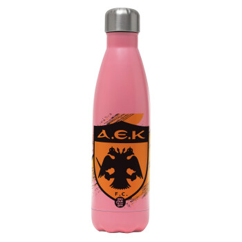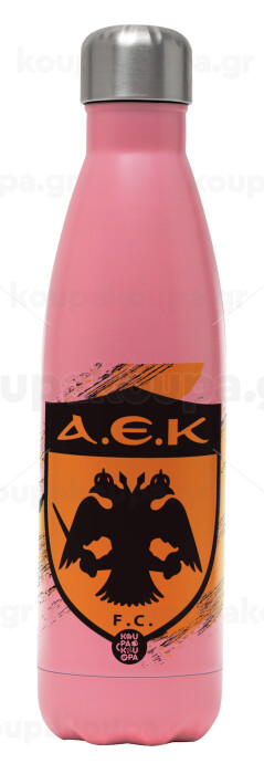FC Α.Ε.Κ., Μεταλλικό παγούρι θερμός Ροζ Ματ (Stainless steel), διπλού τοιχώματος, 500ml