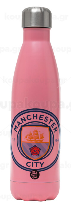 Manchester City FC , Μεταλλικό παγούρι θερμός Ροζ Ματ (Stainless steel), διπλού τοιχώματος, 500ml