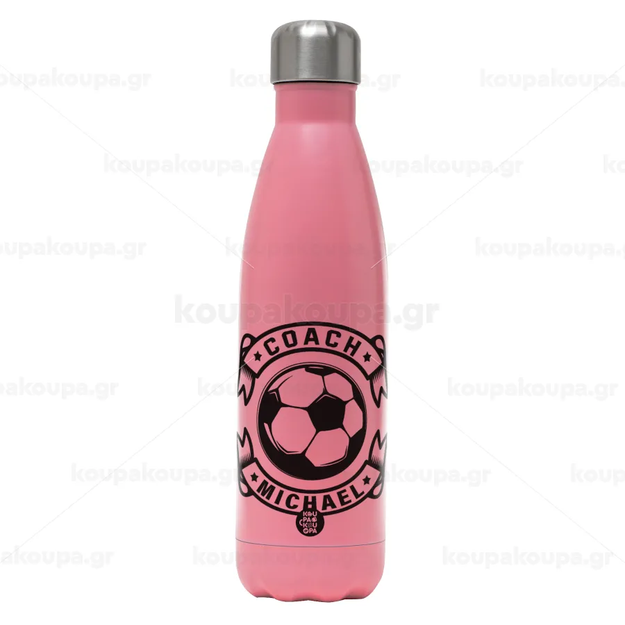 Soccer coach, Μεταλλικό παγούρι θερμός Ροζ Ματ (Stainless steel), διπλού τοιχώματος, 500ml