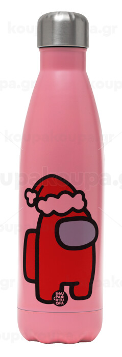 Among US Santa, Μεταλλικό παγούρι θερμός Ροζ Ματ (Stainless steel), διπλού τοιχώματος, 500ml