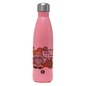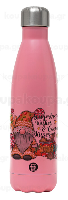 Gingerbread Wishes, Μεταλλικό παγούρι θερμός Ροζ Ματ (Stainless steel), διπλού τοιχώματος, 500ml