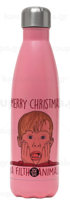 home alone, Merry Christmas ya filthy animal, Μεταλλικό παγούρι θερμός Ροζ Ματ (Stainless steel), διπλού τοιχώματος, 500ml