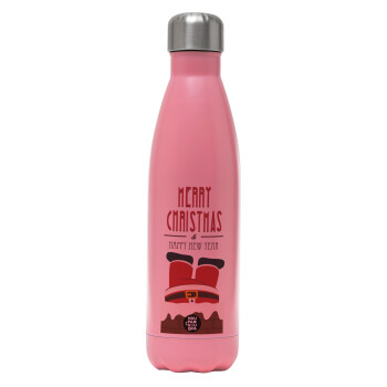 Merry christmas chimney, Μεταλλικό παγούρι θερμός Ροζ Ματ (Stainless steel), διπλού τοιχώματος, 500ml