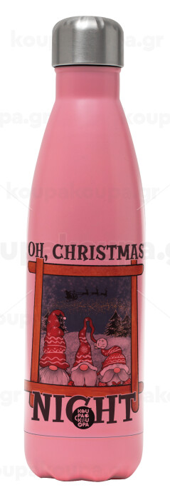 Oh Christmas Night, Μεταλλικό παγούρι θερμός Ροζ Ματ (Stainless steel), διπλού τοιχώματος, 500ml