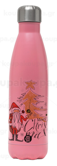 Santa Claus gold, Μεταλλικό παγούρι θερμός Ροζ Ματ (Stainless steel), διπλού τοιχώματος, 500ml