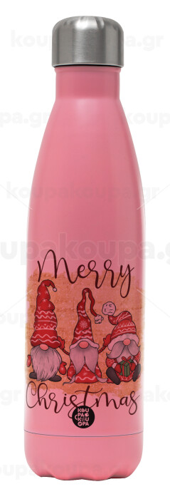 Xmas Elves, Μεταλλικό παγούρι θερμός Ροζ Ματ (Stainless steel), διπλού τοιχώματος, 500ml