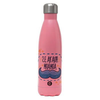 Σε αγαπώ μπαμπά!!!, Μεταλλικό παγούρι θερμός Ροζ Ματ (Stainless steel), διπλού τοιχώματος, 500ml