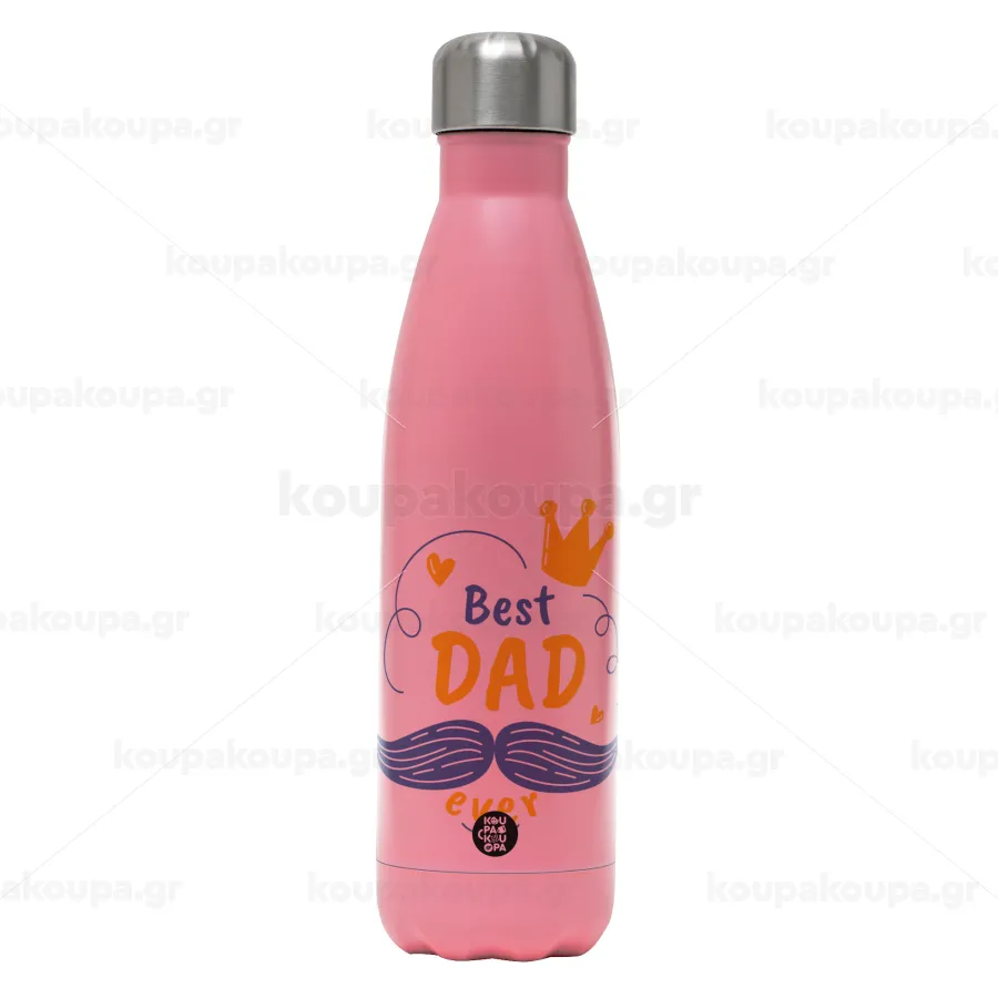 Best dad ever ο Βασιλιάς, Μεταλλικό παγούρι θερμός Ροζ Ματ (Stainless steel), διπλού τοιχώματος, 500ml