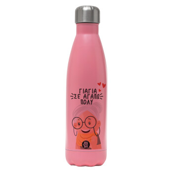 Γιαγιά σε αγαπώ πολύ!, Μεταλλικό παγούρι θερμός Ροζ Ματ (Stainless steel), διπλού τοιχώματος, 500ml